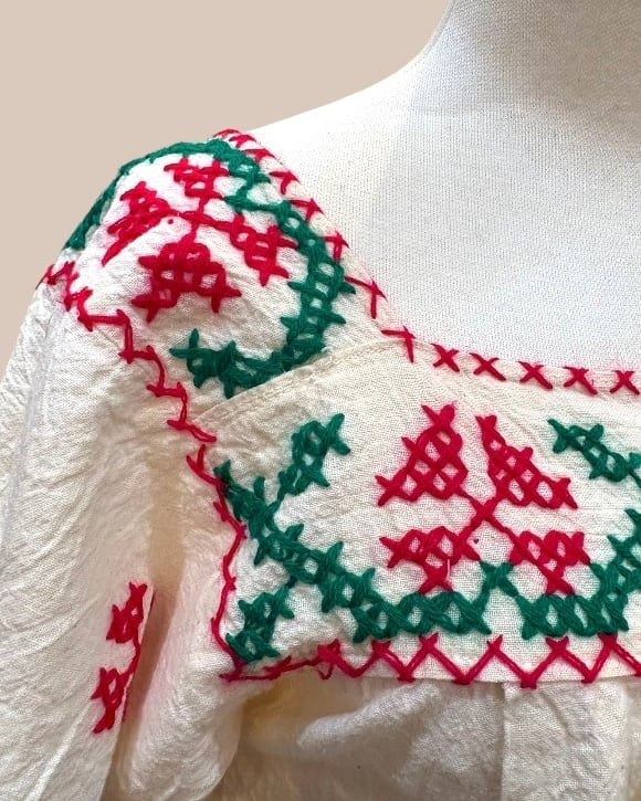 さらっとしたコットンの生地に××××のステッチが可愛いブラウスです。