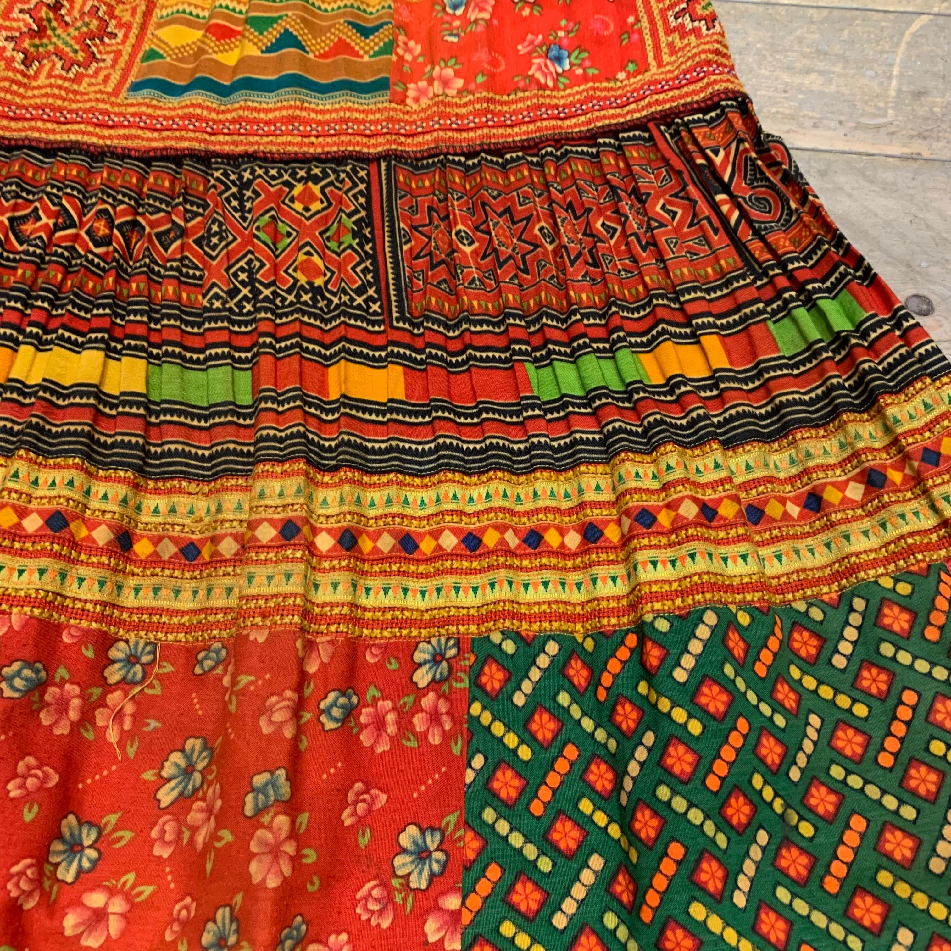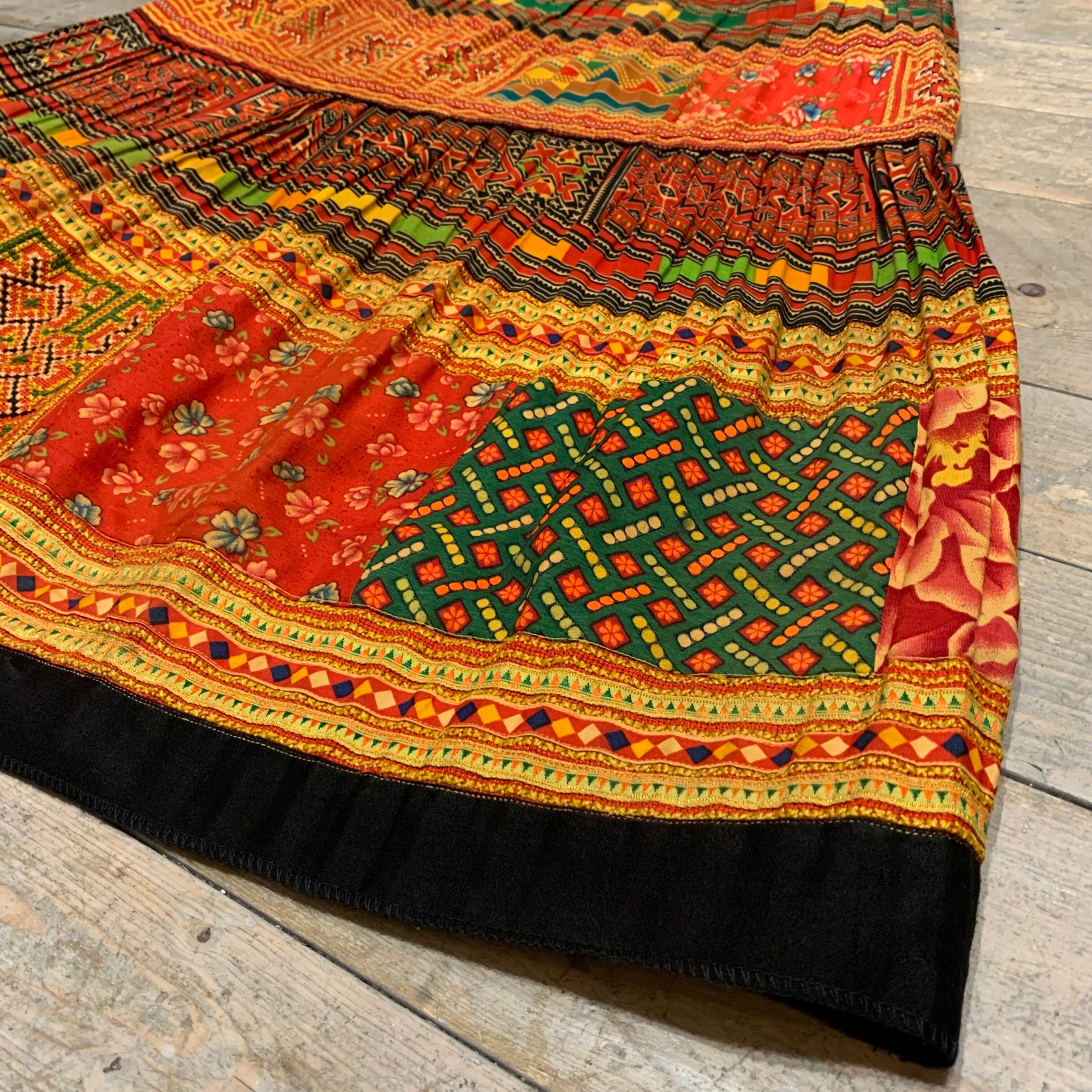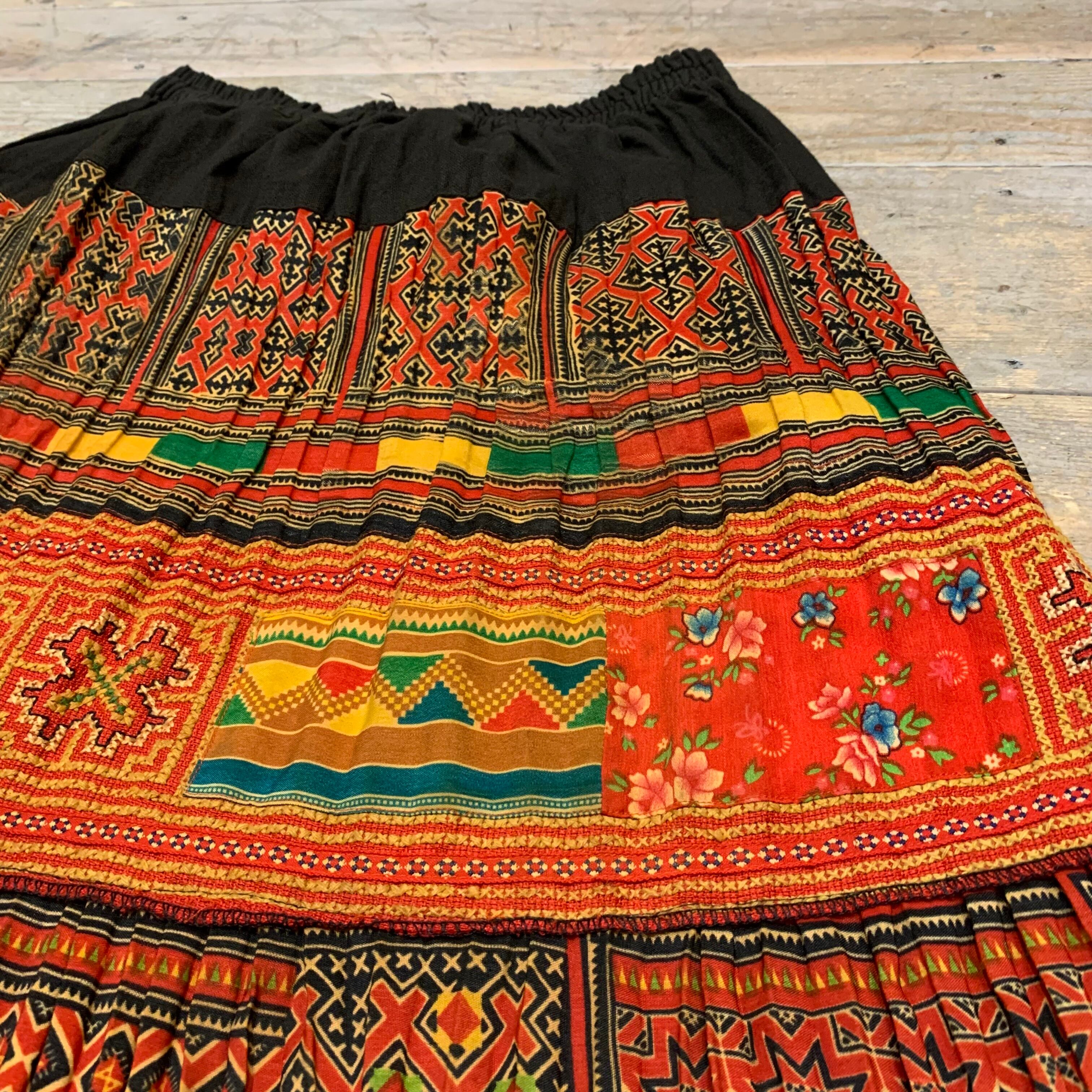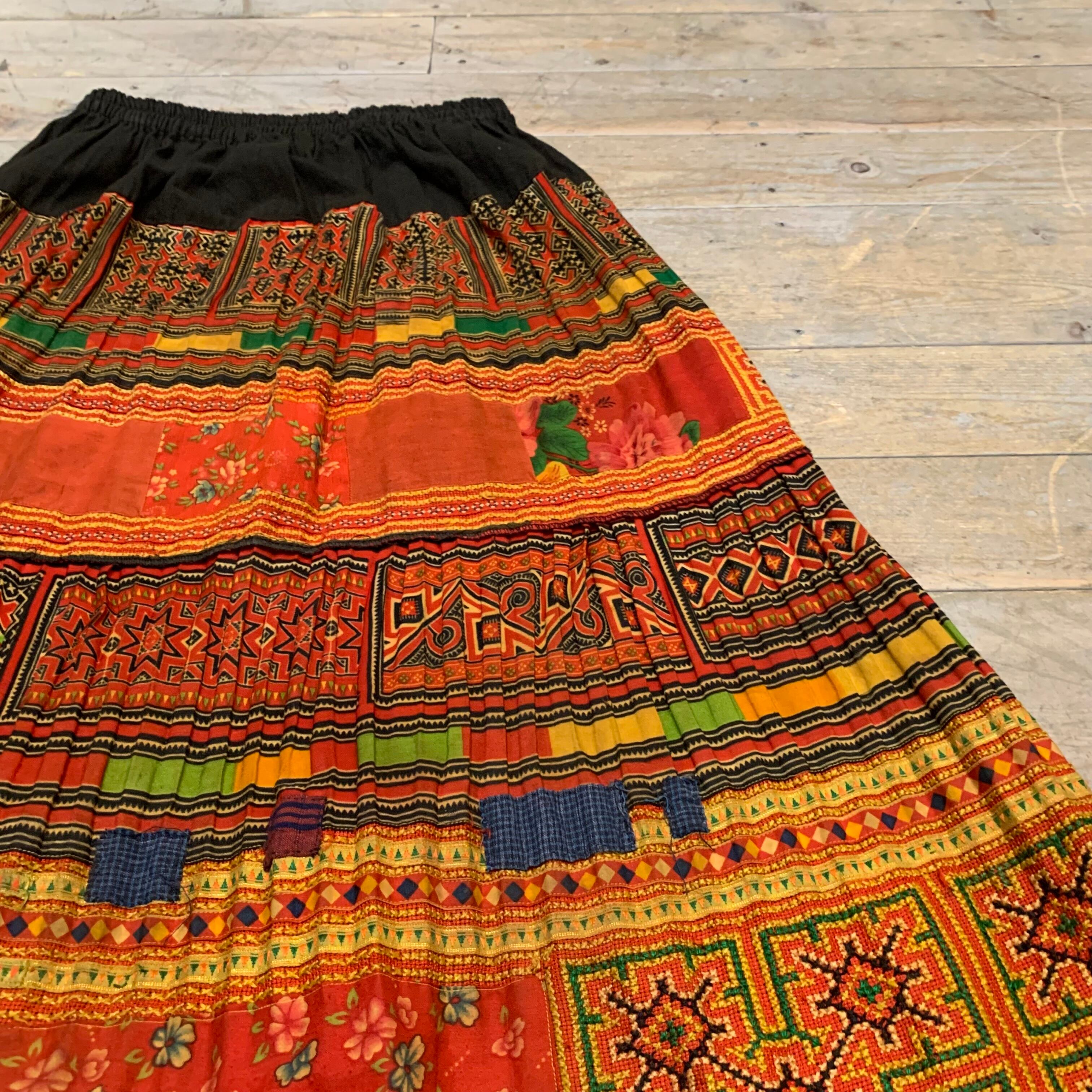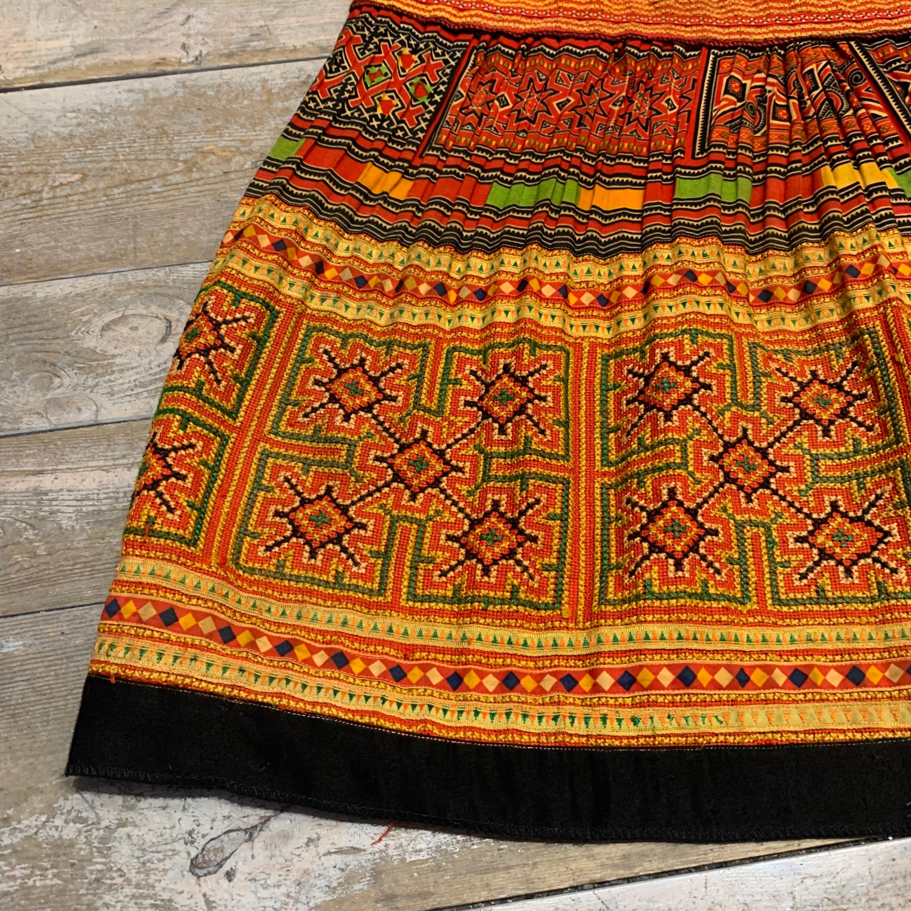 独特の魅力を放つモン族の古布を用いた刺繍スカートです。